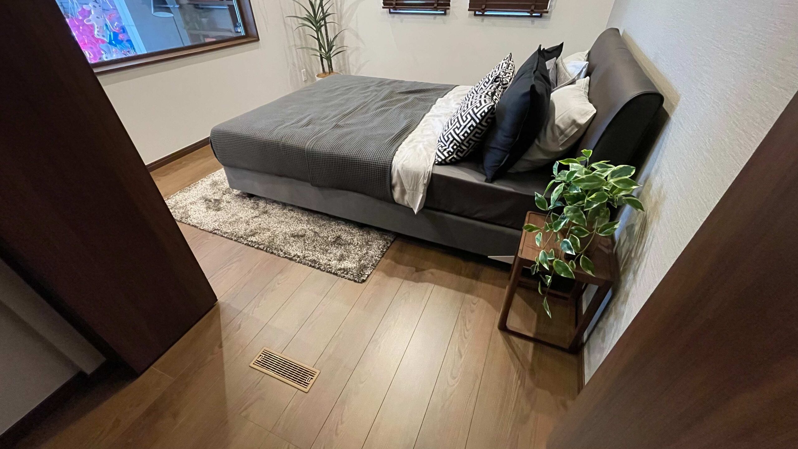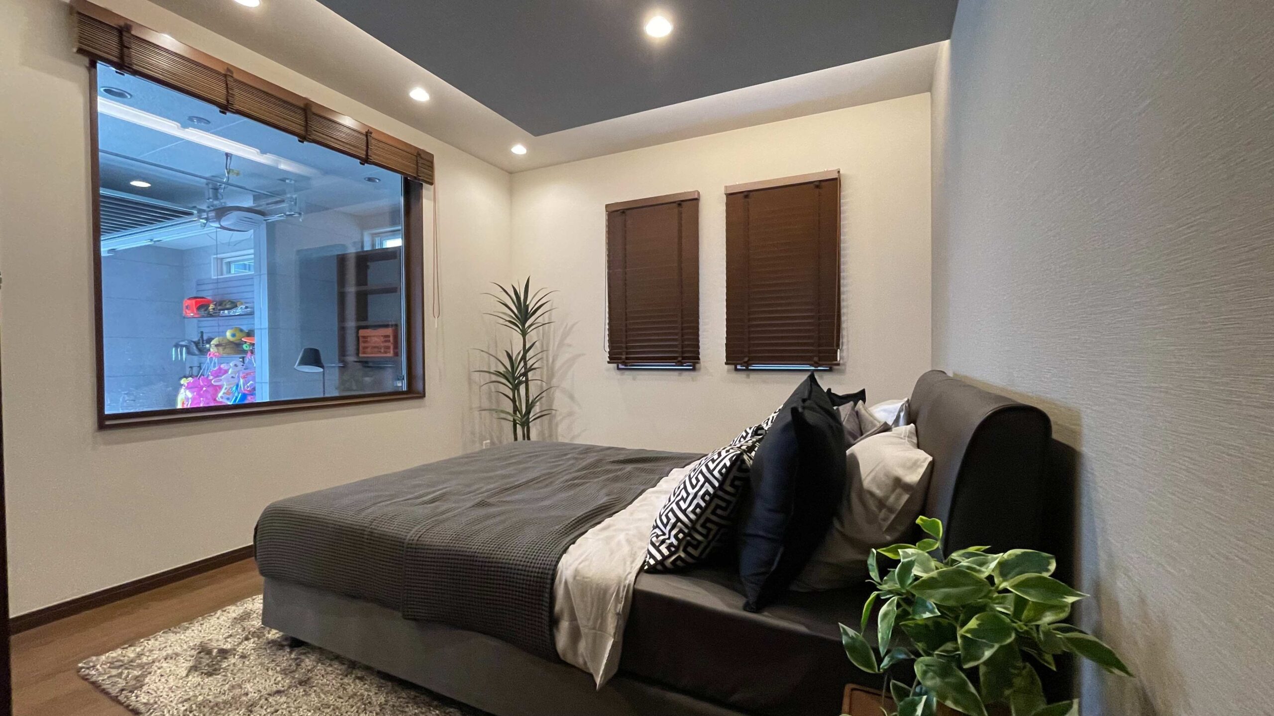 玄関を入って左手には寝室があり、ブラインドを開けると目の前にガレージが!
